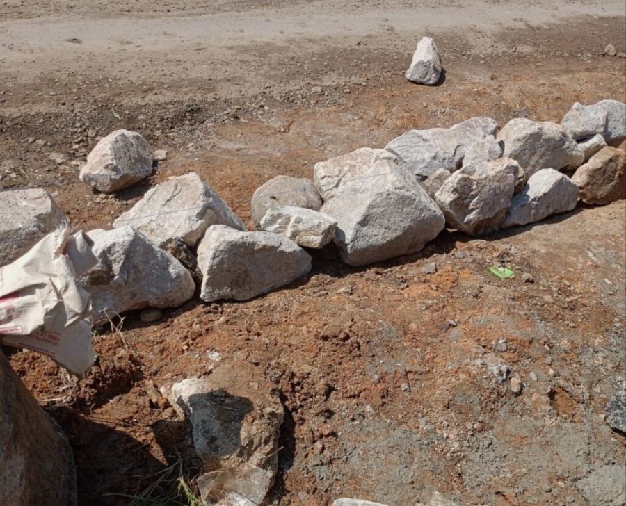 Ia juga menyoroti mutu material yang digunakan. Menurutnya, batu yang digunakan diduga bukan batu berkualitas melainkan batu kapur, dan sebagian pekerjaan tidak melalui proses penggalian terlebih dahulu.